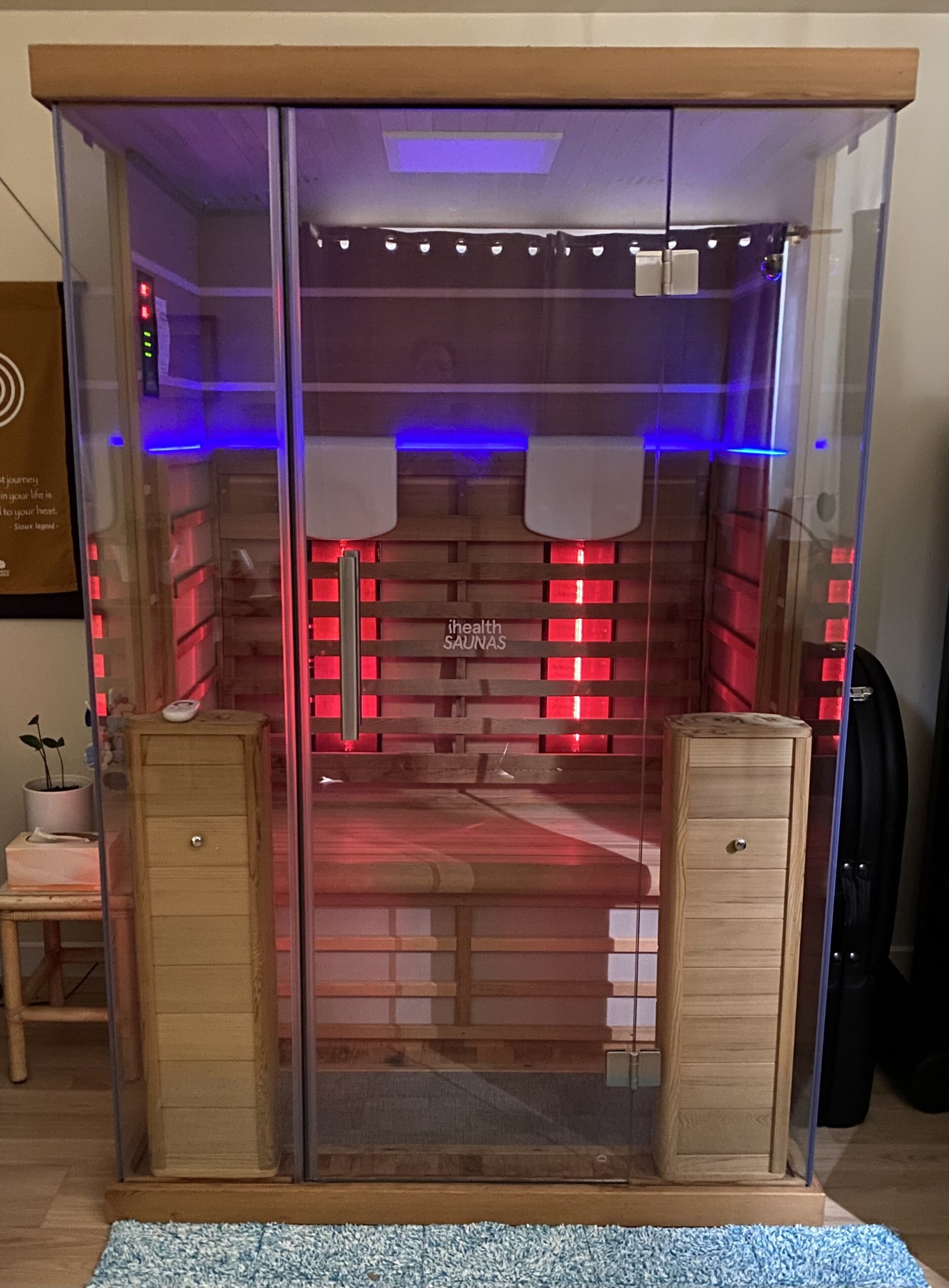 SLEEP – to help improve your sleep and therefore your recovery, healing and just overall health. Sleep sauna sessions can be set up for 40 – 50 degrees, 1 – 1.5 hours duration and done between 30 -40 minutes before going to bed. Support this with no screen time post sauna, a sleepy tea, relaxing and drinking 1 – 1.5 litres of water during the sauna session. Having a warm shower after the sauna session is advisable.